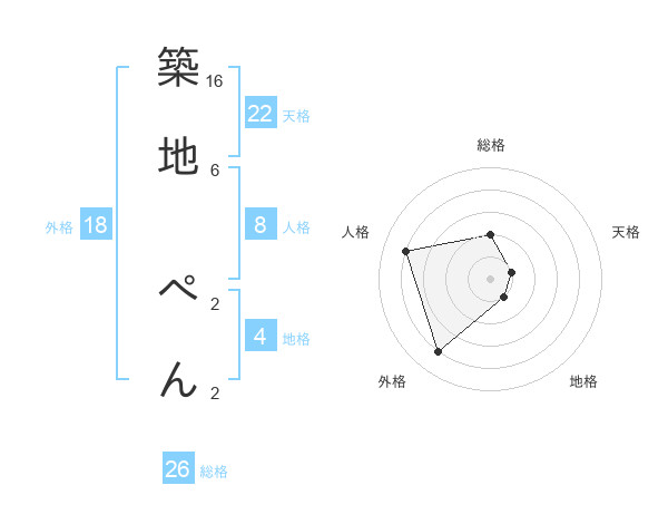 築地 ぺんさんを姓名の画数から五運を鑑定