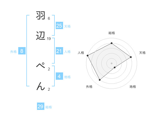 羽辺 ぺんさんを姓名の画数から五運を鑑定