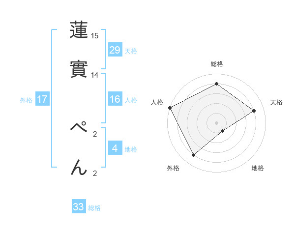 蓮實 ぺんさんの天格は29画の4点!