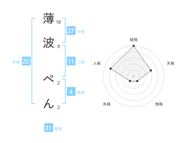 薄波 ぺんさんの総格は31画の5点!
