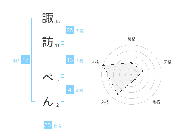 諏訪 ぺんさんの外格は17画の4点!