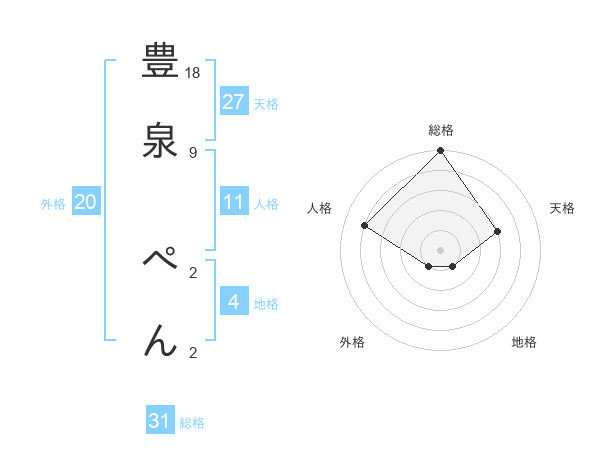 豊泉 ぺんさんを姓名の画数から五運を鑑定