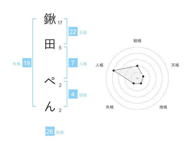 鍬田 ぺんさんを姓名の画数から五運を鑑定