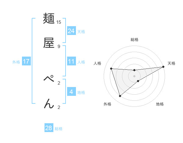 麺屋 ぺんさんを姓名の画数から五運を鑑定