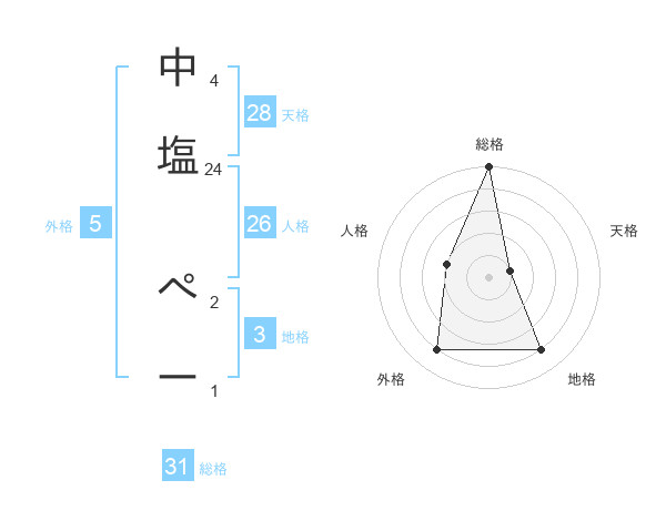 中塩 ぺーさんを姓名の画数から五運を鑑定