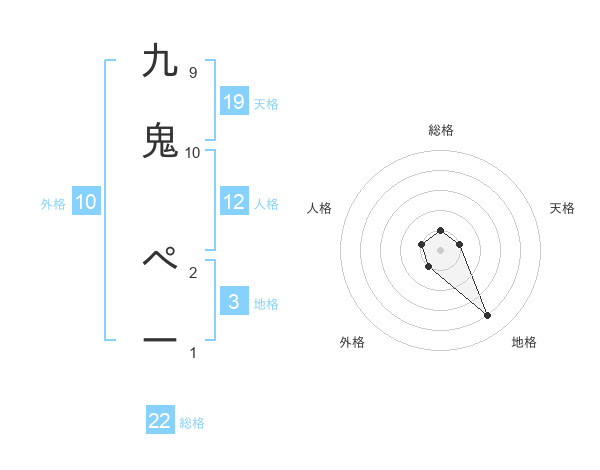 九鬼 ぺーさんの総格は22画の1点!
