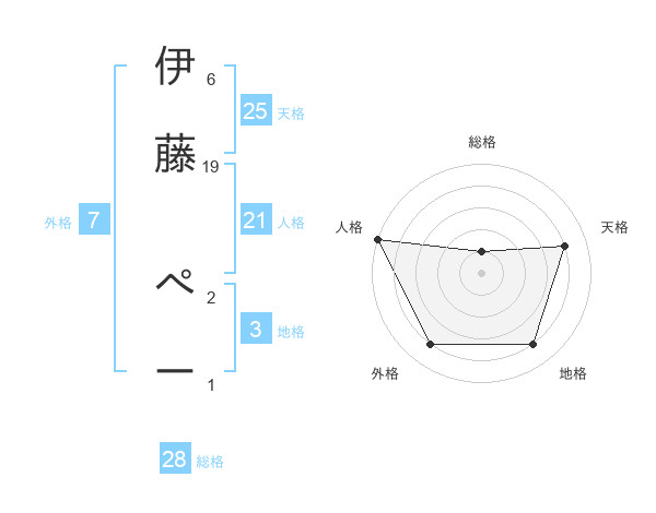 伊藤 ぺーさんを姓名の画数から五運を鑑定