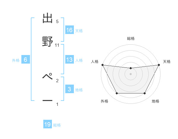 出野 ぺーさんの天格は16画の5点!
