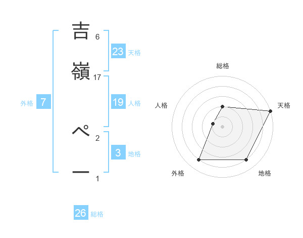 吉嶺 ぺーさんの総格は26画の2点!