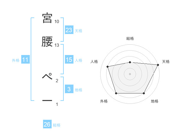 宮腰 ぺーさんを姓名の画数から五運を鑑定