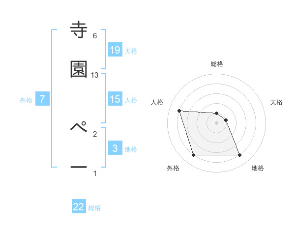 寺園 ぺーさんの地格は3画の4点!