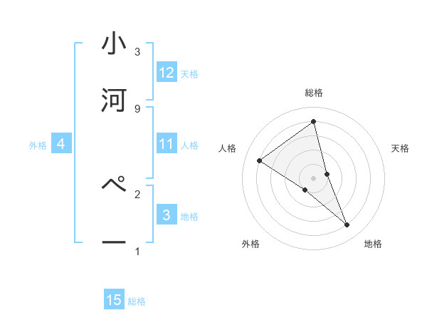 小河 ぺーさんを姓名の画数から五運を鑑定