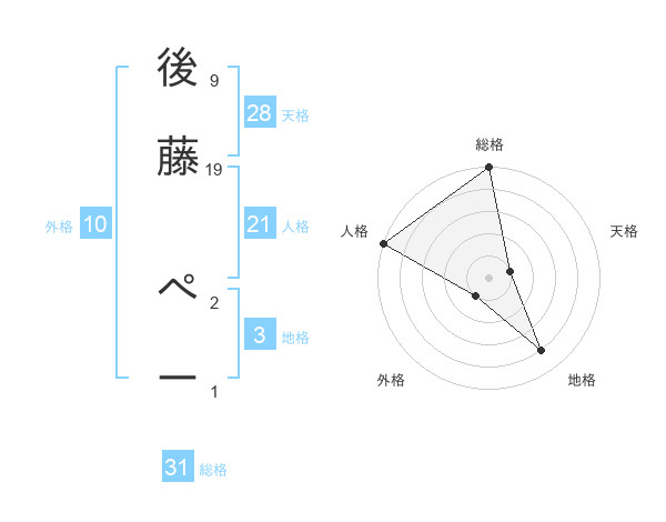 後藤 ぺーさんを姓名の画数から五運を鑑定