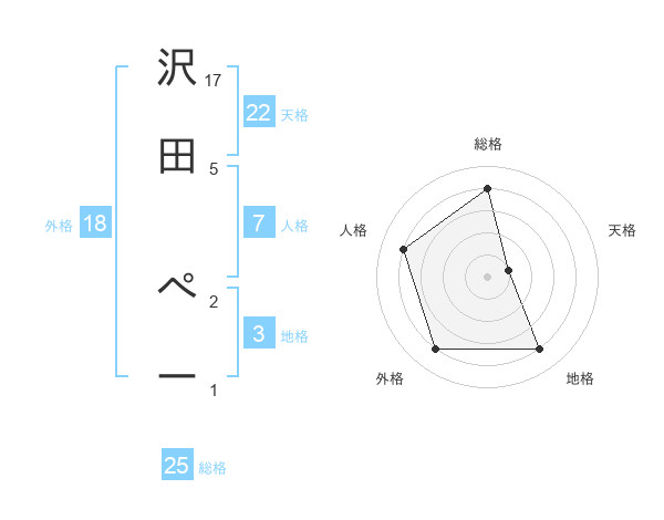 沢田 ぺーさんを姓名の画数から五運を鑑定