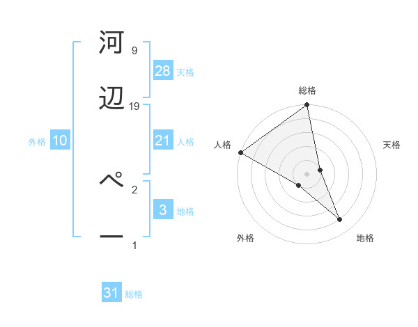 河辺 ぺーさんの総格は31画の5点!