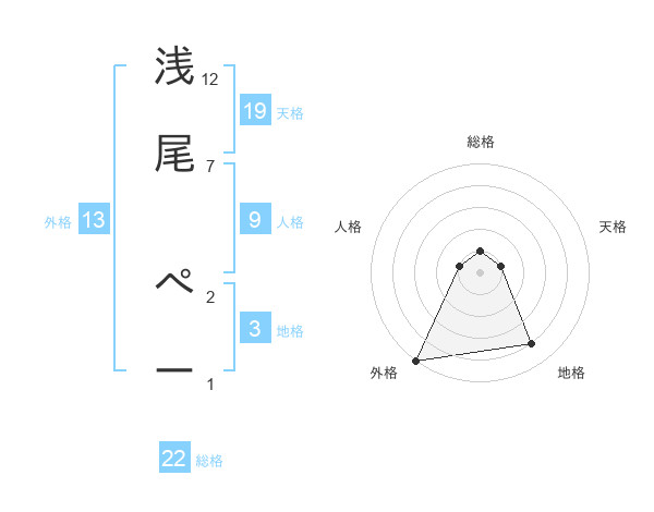 浅尾 ぺーさんを姓名の画数から五運を鑑定
