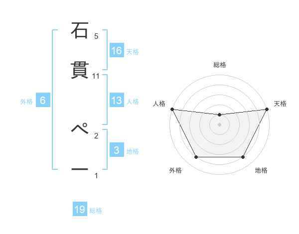 石貫 ぺーさんの天格は16画の5点!