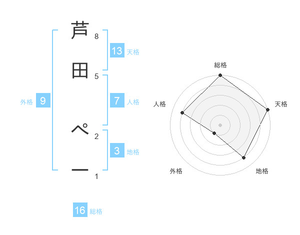芦田 ぺーさんの天格は13画の5点!