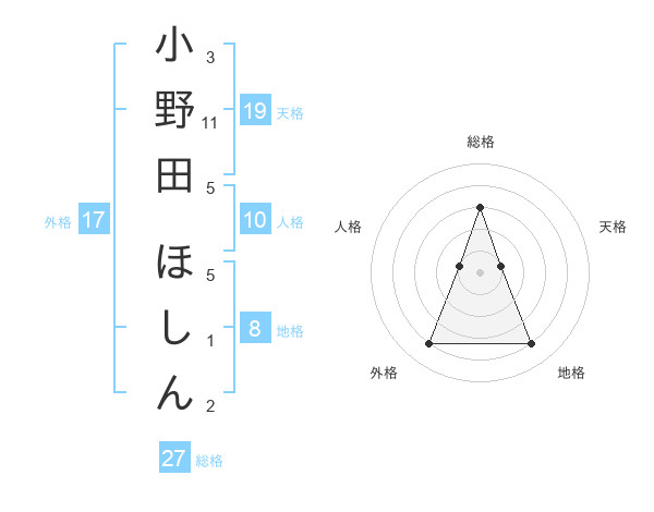 小野田 ほしんさんの総格は27画の3点!