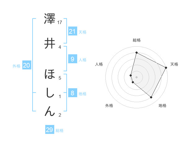 澤井 ほしんさんを姓名の画数から五運を鑑定