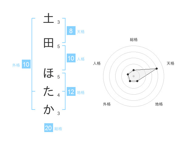 土田 ほたかさんの総格は20画の1点!