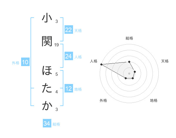 小関 ほたかさんの総格は34画の2点!