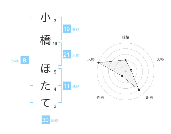 小橋 ほたてさんを姓名の画数から五運を鑑定