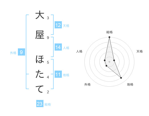 大屋 ほたてさんを姓名の画数から五運を鑑定