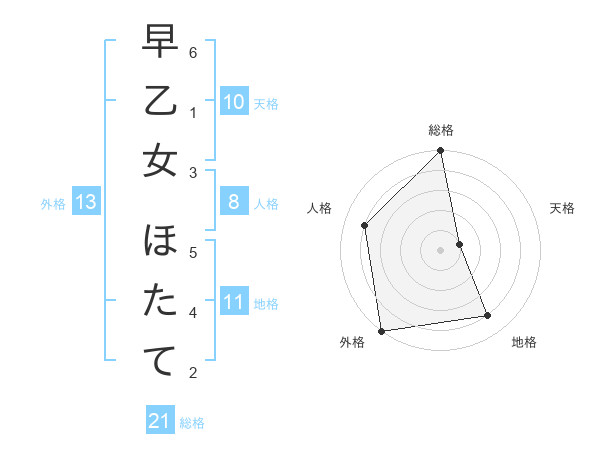 早乙女 ほたてさんを姓名の画数から五運を鑑定