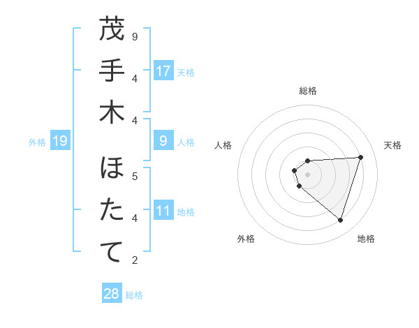 茂手木 ほたてさんの天格は17画の4点!