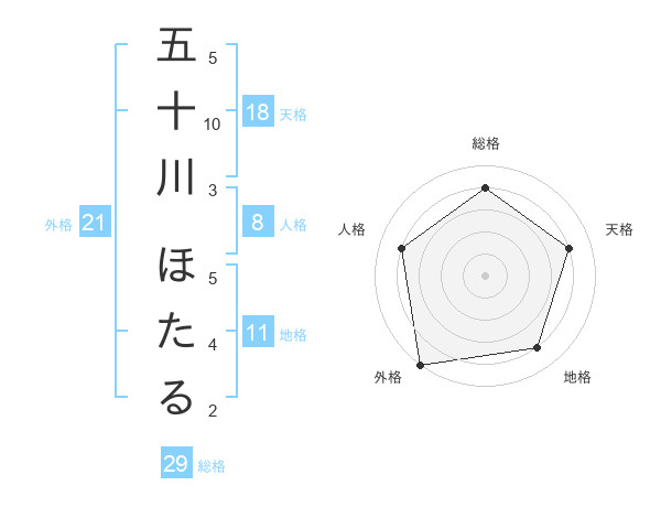 五十川 ほたるさんを姓名の画数から五運を鑑定