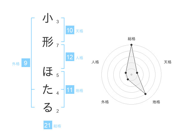 小形 ほたるさんの総格は21画の5点