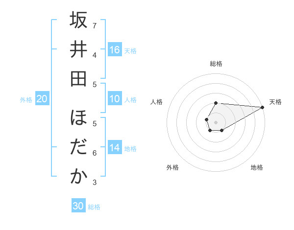 坂井田 ほだかさんを姓名の画数から五運を鑑定