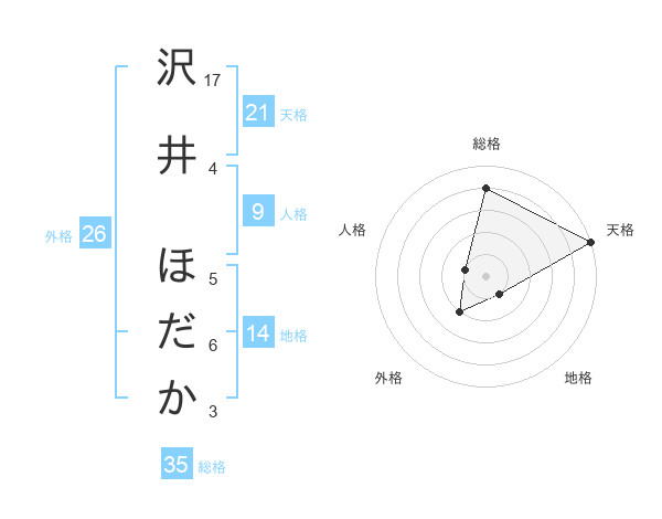 沢井 ほだかさんの天格は21画の5点!