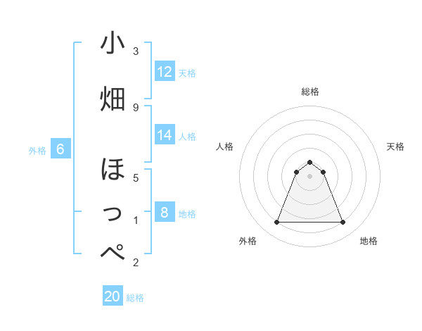 小畑 ほっぺさんを姓名の画数から五運を鑑定