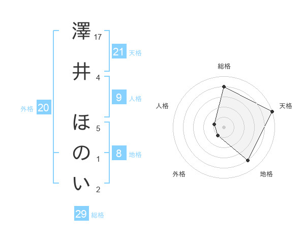澤井 ほのいさんを姓名の画数から五運を鑑定