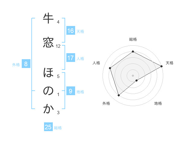 牛窓 ほのかさんの天格は16画の5点!