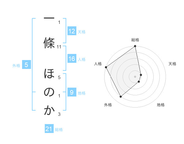 一條 ほのかさんの総格は21画の5点!