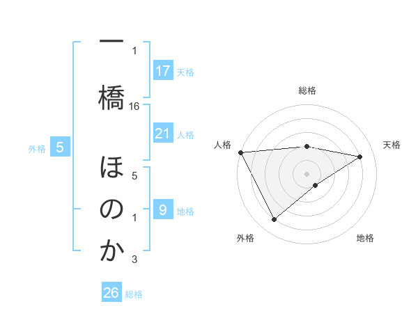 一橋 ほのかさんの外格は5画の4点!