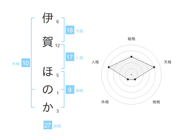 伊賀 ほのかさんの総格は27画の3点!