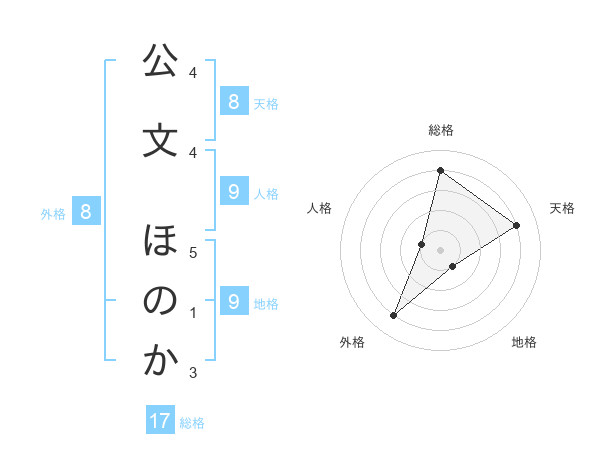 公文 ほのかさんを姓名の画数から五運を鑑定