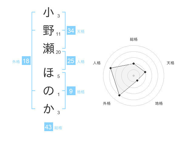 小野瀬 ほのかさんを姓名の画数から五運を鑑定