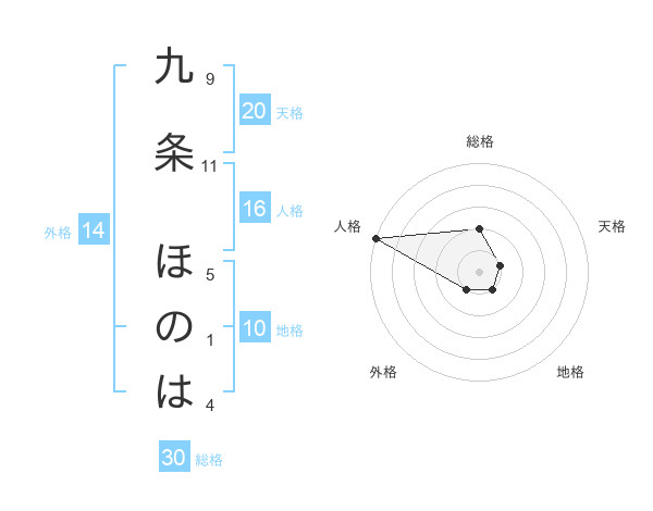 九条 ほのはさんの外格は14画の1点!