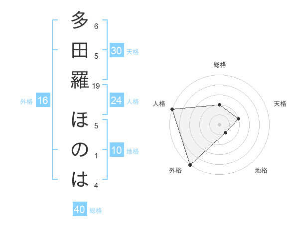 多田羅 ほのはさんを姓名の画数から五運を鑑定