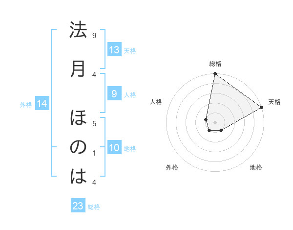 法月 ほのはさんを姓名の画数から五運を鑑定