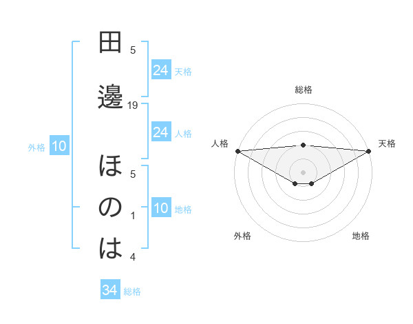 田邊 ほのはさんを姓名の画数から五運を鑑定