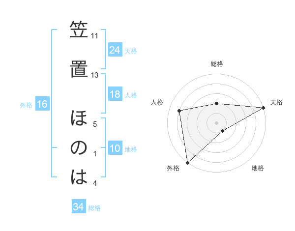 笠置 ほのはさんの天格は24画の5点!