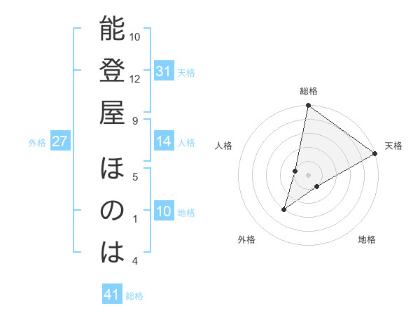 能登屋 ほのはさんを姓名の画数から五運を鑑定