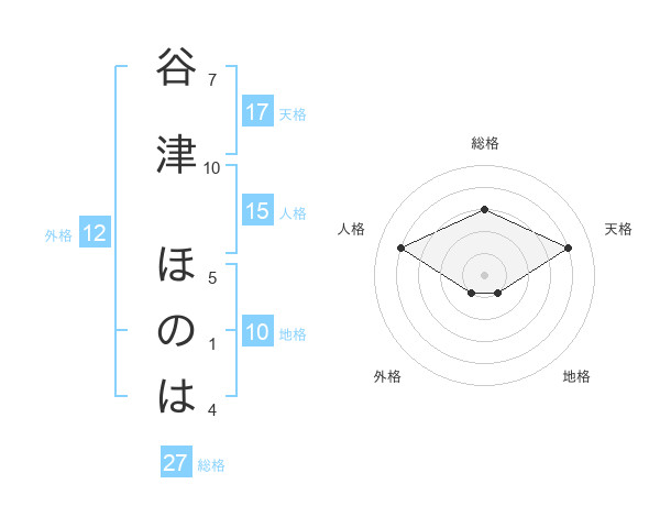 谷津 ほのはさんを姓名の画数から五運を鑑定