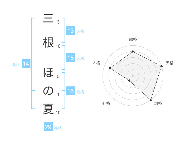 三根 ほの夏さんの天格は13画の5点!